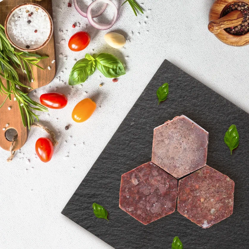 Состав: смесь печени (в приготовлении может использоваться: гусиная, утиная, куриная, печень индейки, печень говяжья, печень козлятины и печень ягнятины в зависимости от наличия), лук репчатый, яйцо куриное, мука пшеничная, соль пищевая, перец черный молотый.