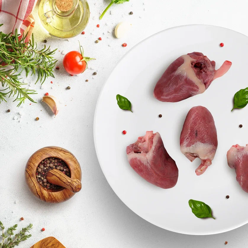 Сердце индейки. Срок годности в замороженном виде (-18С) указан на этикетке.