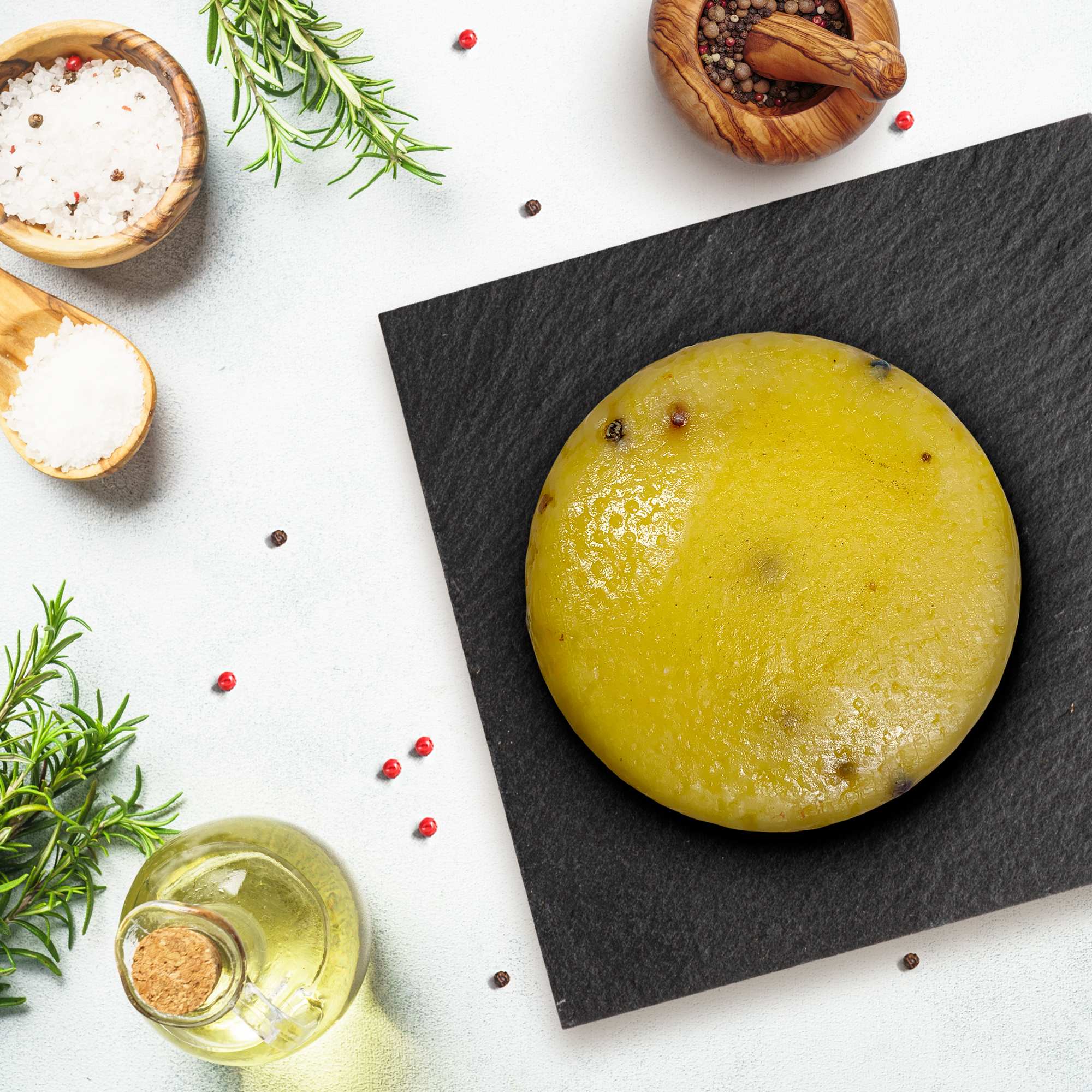 Состав: молоко коровье сырое, соль пищевая, кальций хлористый (Е509), препараты ферментные молокосвертывающие растительного происхождения, закваски концентрированные бактериальные молочнокислых бактерий, перец розовый.