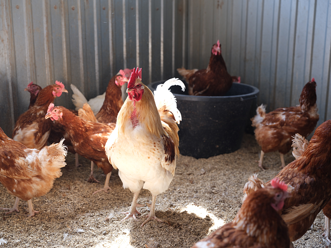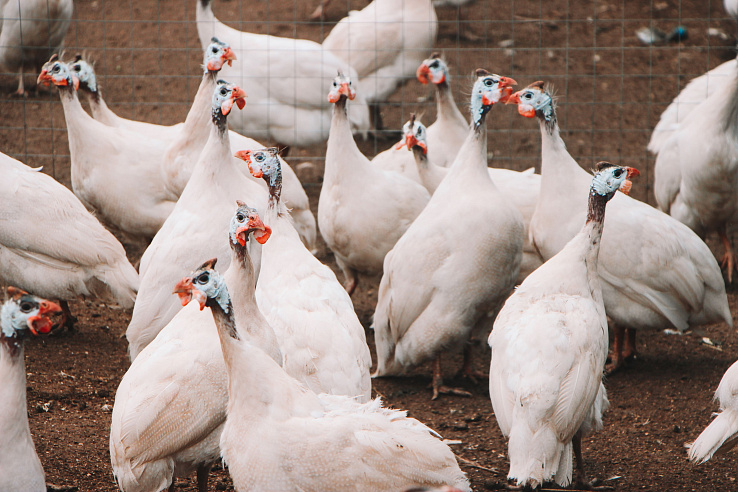 Птицу мы выращиваем от яйца до взрослой особи в небольших птичниках с выгулом. В летнее время кормление дополняется зелёной травой, а в осеннее — овощами и яблоками. Именно поэтому мясо нашей птицы обладает исключительным вкусом. У нас более 1000 голов птиц (курицы-несушки, цыплята бройлеры, цесарки, утки, индюки, гуси).